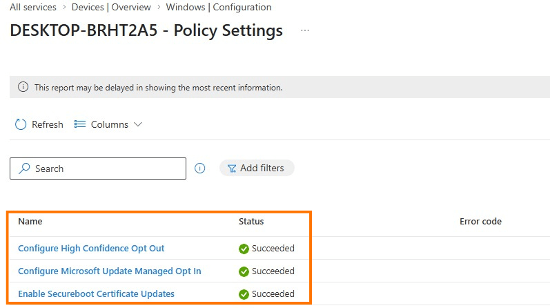 Secure boot status report (Windows Autopatch)