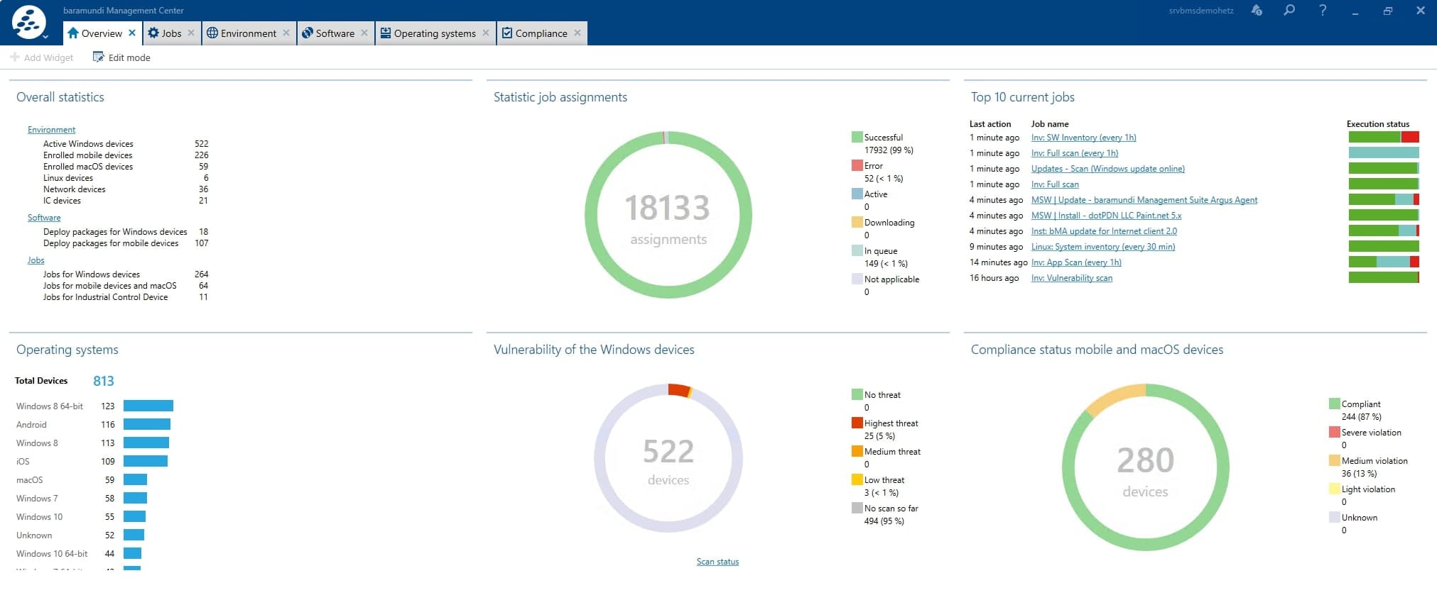 baramundi ist seit über 25 Jahren der Experte für Unified Endpoint Management. Mit der baramundi Management Suite bekommt Ihr ein vielseitiges Tool, mit dem Ihr die volle Kontrolle über all Ihre Endpoints erlangt und durch Automatisierung von Routineaufgaben eure Produktivität maximiert. Die baramundi Management Suite ist schnell aufgesetzt, intuitiv zu bedienen und bietet dabei bestmögliche Usability und Transparenz.